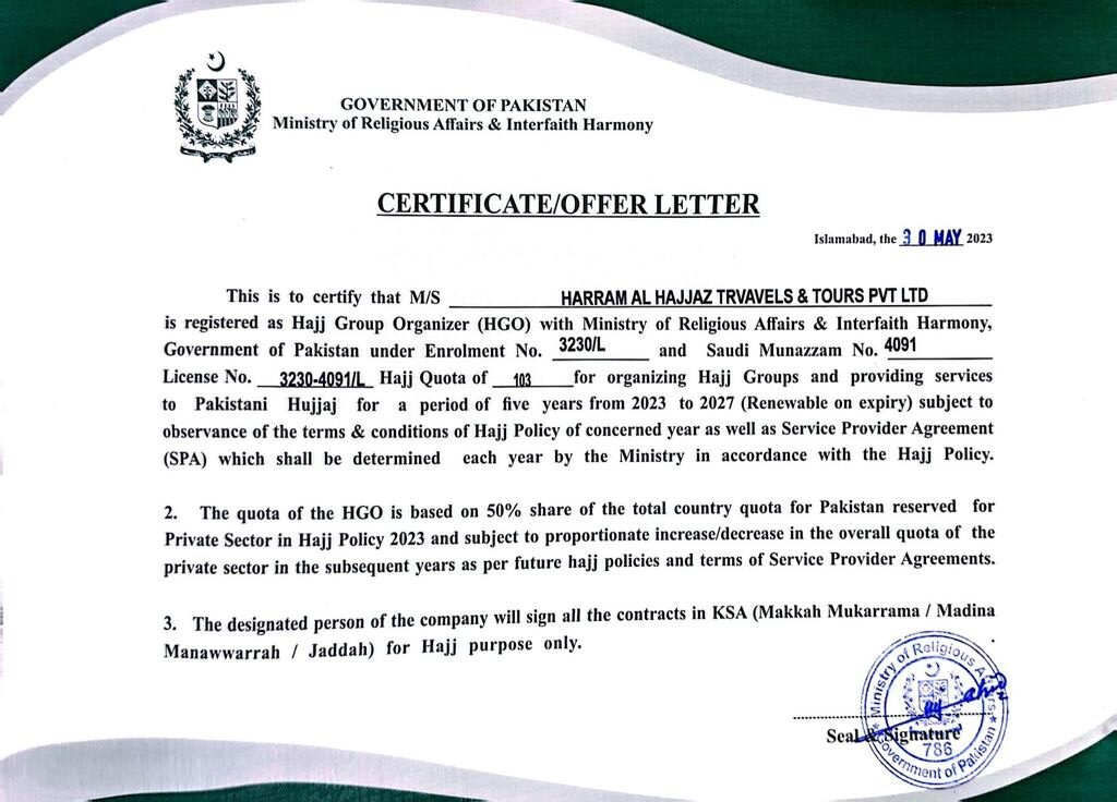 Government of Pakistan & Saudia's Approved Hajj Quota Holder